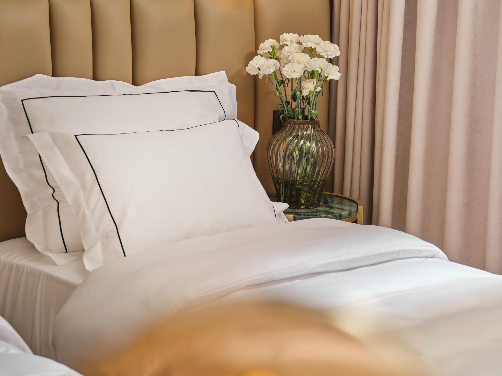 Elegantne i prostrane sobe s dva odvojena kreveta, dizajnirane za udobnost i opuštanje. Meka, visokokvalitetna posteljina, veliki ormar i profinjeni detalji upotpunjuju elegantni interijer. Svaka soba uključuje kutak s foteljom, savršen za trenutke mira, te ogledalo za šminkanje radi dodatne udobnosti. S luksuznim dodacima, svaki boravak postaje izuzetno iskustvo, bilo za posao ili uživanje.